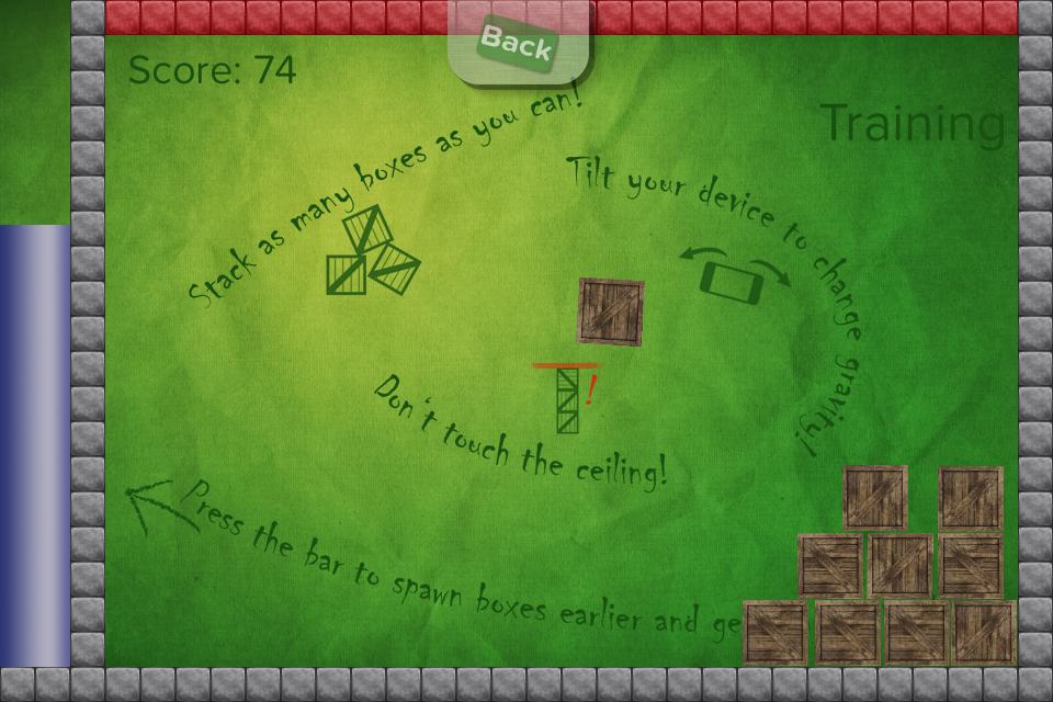 *通过巧妙地将它们拖动并倾斜设备来堆叠盒子。