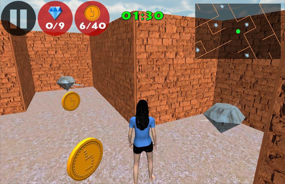 每当您将获得随机的3D迷宫,以使用屏幕上的虚拟操纵杆进行探索。您需要完成不同的任务,例如在指定的时间内收集隐藏的钻石,硬币并返回终点线。该游戏还将为您提供迷你图。免费版本将包含小广告。