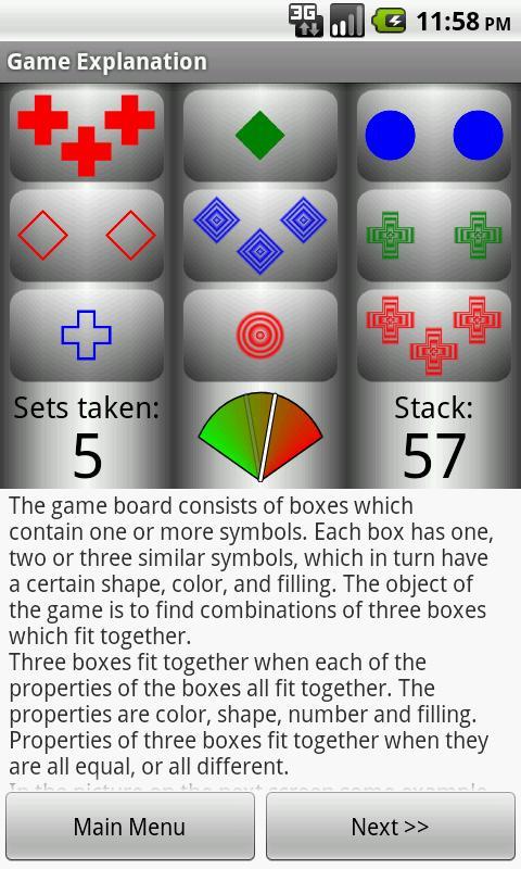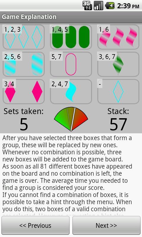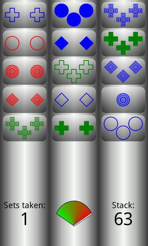 在这个单人游戏拼图游戏中,玩家使用模式识别来查找属于符号的组合。该游戏基于一款名为Set的游戏,该游戏是由Marsha Falco在1974年设计的。