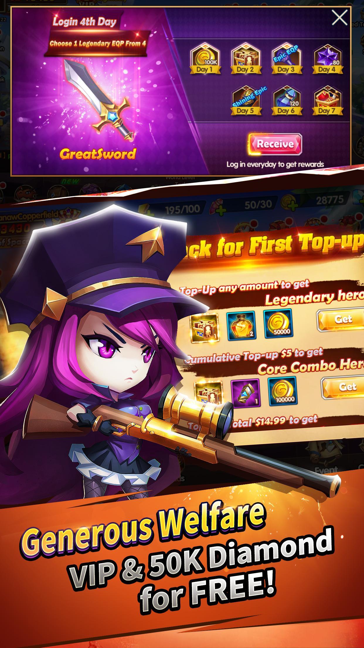 - 英雄之间的组合,对他们排队并解锁额外的奖励!