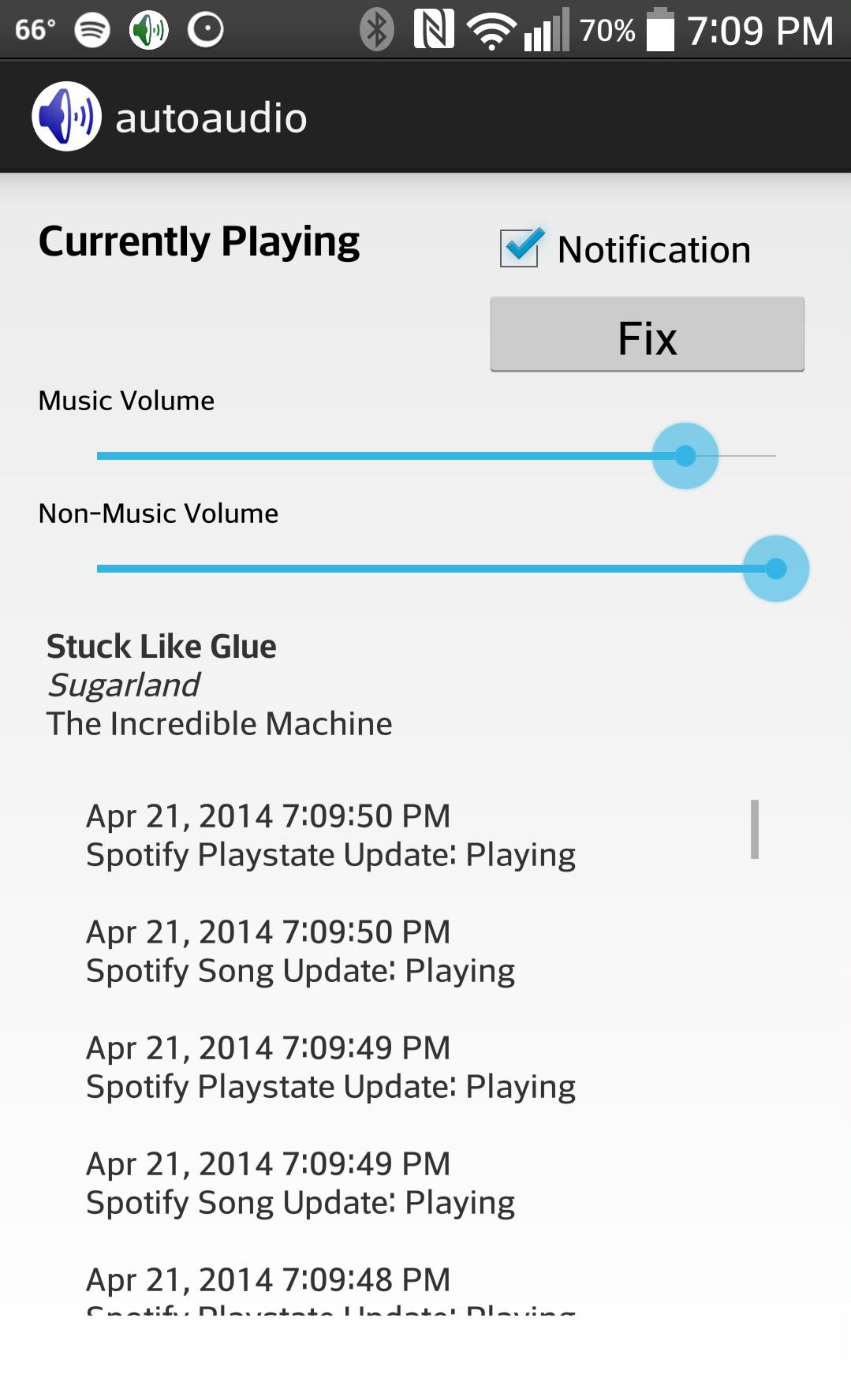 **您需要為此提供自動通知訪問權限,以便與Spotify的最新版本一起使用,因為它們似乎不再支持設備廣播。 (有些手機隱藏了此設置,因此AutoAudio有一個按鈕可以將您直接帶到設置屏幕)