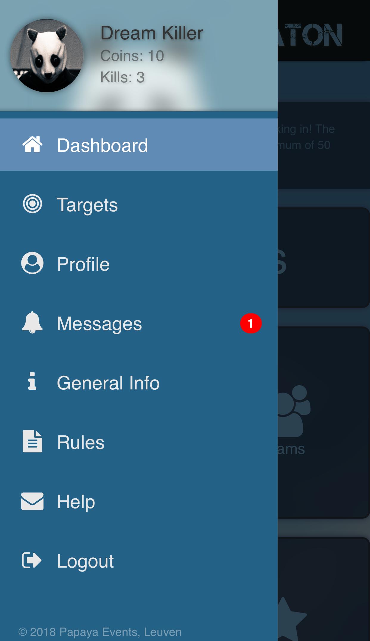 一旦獲得訂閱,您將在公共汽車旅行或7月4日的比利時入侵露營中受到激活並接收水上槍。激活後,您和您的朋友可以組成一個團隊。遊戲開始後,該應用顯示了您的三個個人目標以消除。這些目標是隨機的其他參與者,他們不屬於您的團隊。消除僅通過使用分佈式水槍將水噴到目標上才發生在節日的地形上。每次淘汰後,您都會在應用程序中使用(瘋狂的)自拍照,以正式化犯罪。