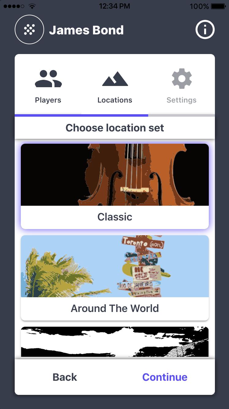 間諜言語遊戲的離線版。玩不同的位置集!