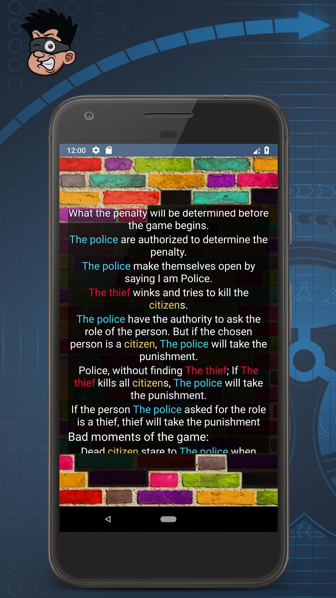 在紙牌遊戲中,寫作角色,繪畫等很麻煩。使用此應用程序,您可以輕鬆地在Thief Police遊戲中分發角色。